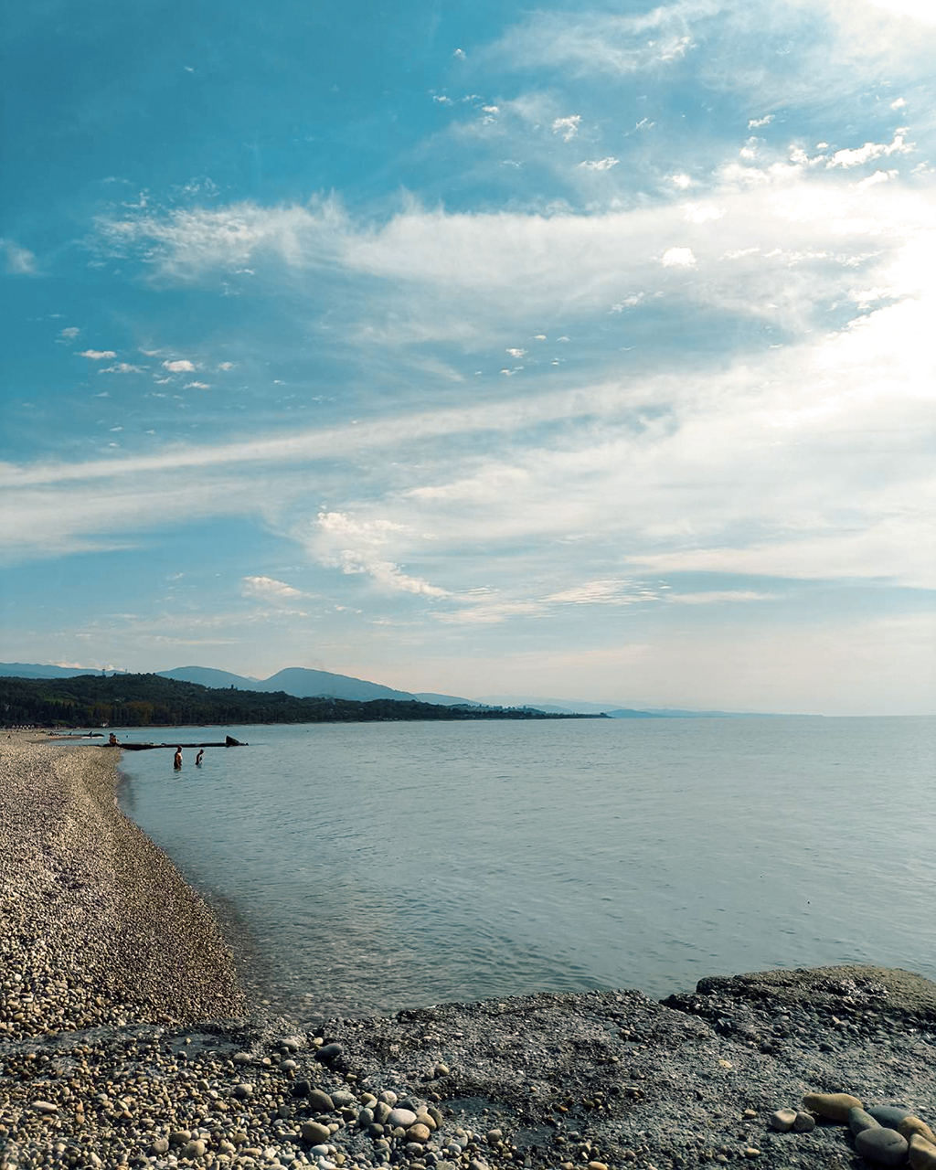 Абхазия расположена в северо-западной части Закавказья между реками Псоу и Ингур, на юго-западе омывается Чёрным морем. Побережье длиной более 210 км мало изрезанное, часто встречаются широкие галечные пляжи. Морские просторы, субтропическая растительность, бурные реки и вершины Большого Кавказа придают Абхазии исключительную живописность. Климат влажный субтропический, пляжный сезон с середины мая по октябрь. В окрестностях города много исторических и природных достопримечательностей: село Лыхны (в XIX веке было столицей Абхазии), дача Сталина в Мюссере, скальный монастырь в селе Отхара, гудаутский винно-водочный завод, черепашье озеро, перевал гудаутский и другое.
